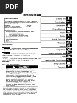 1999 2001 Honda Hr V Workshop Service Manual By Kas Bilag